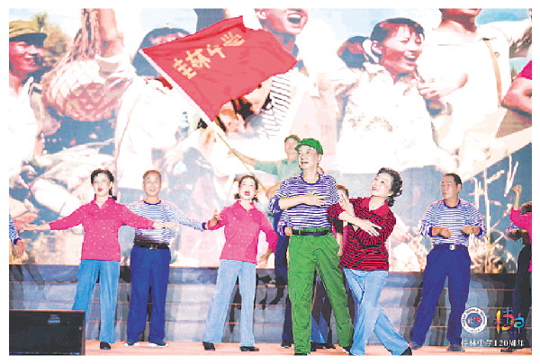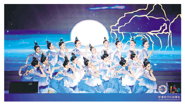最后,一曲特别为桂林中学120年校庆创作的《寻弋世界的精灵》将晚会带入尾声。“当琅声俏影摇曳记忆,满园弥散馥郁的芳馨……好好爱自己,寻弋世界的精灵,在繁华山野倾洒纯的欢愉。”优美的旋律、温馨的歌词,为所有桂林中学的学子送去祝福,祝福他们去追寻属于桂中的辉煌未来。