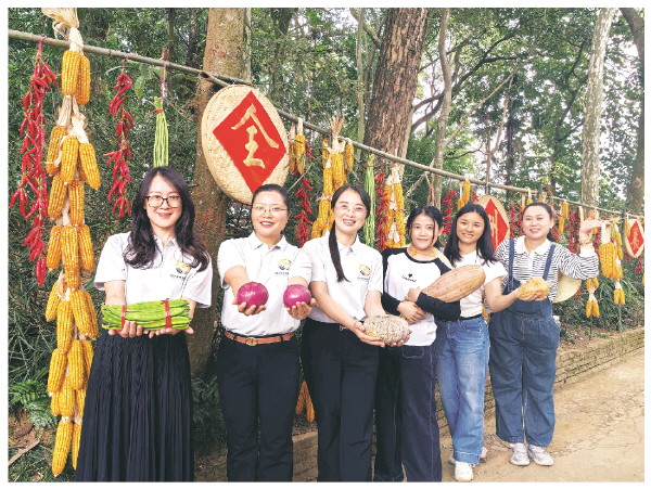 全州龙水镇群众和游客一起展示丰收农产品。 记者秦丽云 摄