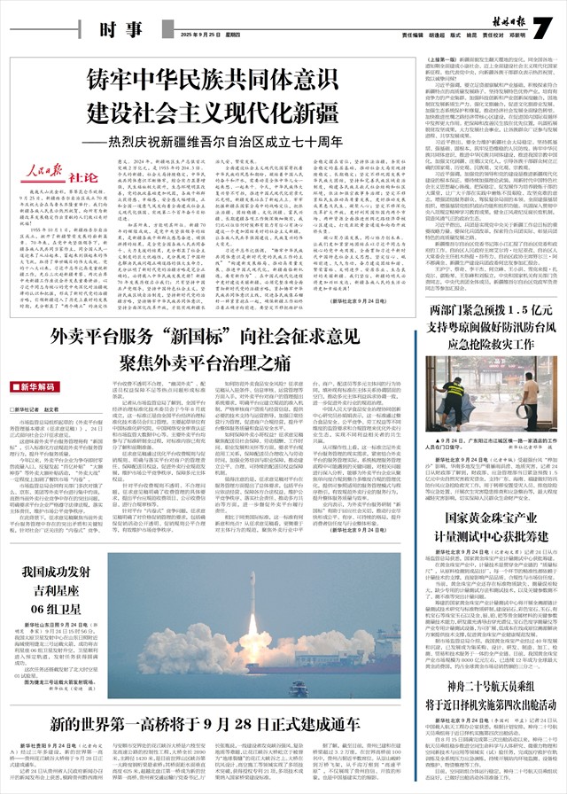 习近平指出,新疆维吾尔自治区成立70年来,在党中央坚强领导和全国人民大力支持下,自治区党委和政府团结带领全区各族干部群众坚定维护国家统一、民族团结、社会稳定,持续推动经济社会发展,(下转第七版)