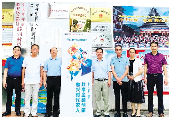 工行桂林分行王俊行长助理带队到临桂区会仙镇睦洞村委,与该村委共同为工行“兴农通”农村普惠金融服务点揭牌。