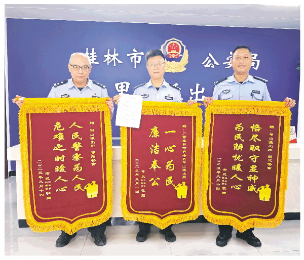 甲山派出所收到河南省的赵女士夫妇寄来的三面锦旗和感谢信。(秀峰公安局供图)