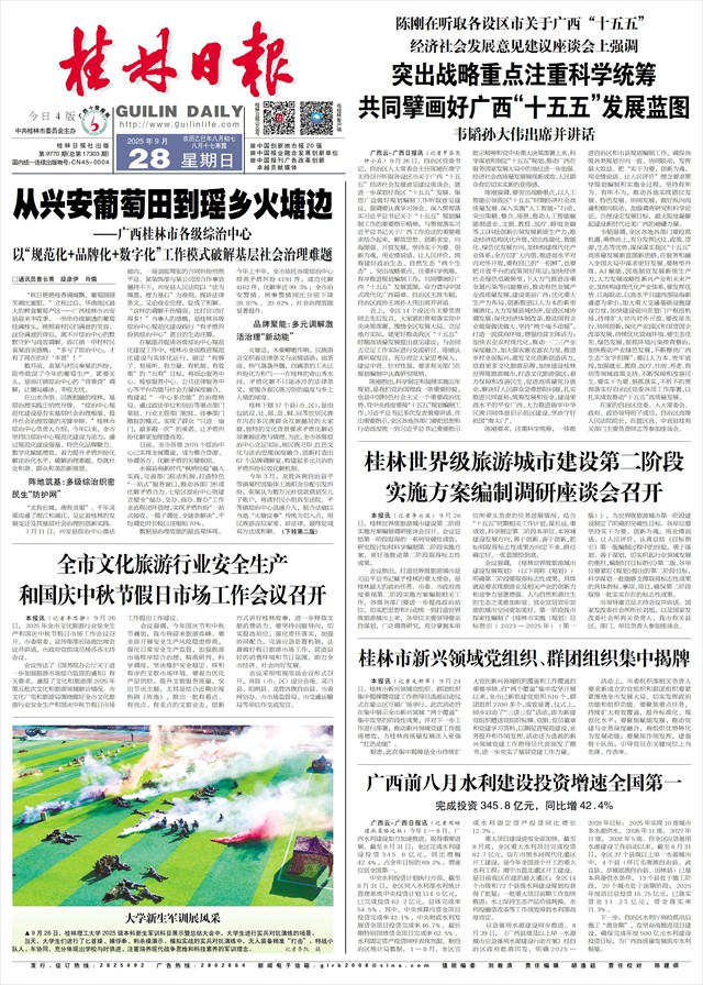 会议强调,今年国庆节和中秋节叠加,我市将迎来旅游高峰。要全面开展安全生产风险隐患排查,强化日常安全生产监管,加强旅游市场秩序综合治理,精准研判、科学调度,坚决维护安全稳定、祥和有序的文旅市场环境。要着力优化产品供给,提升文旅服务质量,突出节庆主题,尤其是结合近期央视热剧《阵地》,推出一批有看点、有亮点、有卖点的文旅业态,创新方式讲好桂林故事,进一步释放文旅消费活力。要坚持问题导向,切实提高站位,强化责任落实,加强协同配合,完善应急处置机制,认真做好假日旅游市场工作,营造良好的消费环境和节日氛围,助力全市经济、社会向好发展。