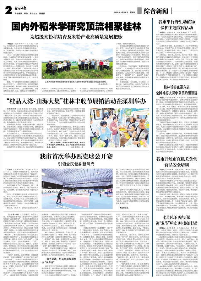 本报讯(记者何平江)9月22—25日,来自国内外稻米学研究领域的多位权威专家相聚桂林,为桂林米粉专用超级稻的种植、加工现场把脉,为推动桂林米粉产业高质量发展建言献策。