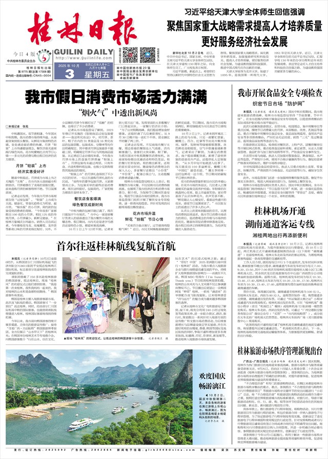桂林市市场监管局相关负责人表示,国庆中秋长假期间,全市市场监管部门将持续执行“节日监管不打烊”机制,进一步强化监管执法,畅通投诉举报渠道,对食品安全问题坚持“零容忍”态度,确保市民和游客在桂林度过一个欢乐、祥和的假期。