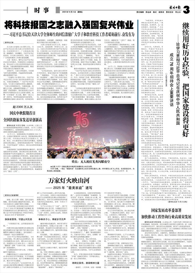 将科技报国之志融入强国复兴伟业 ——习近平总书记给天津大学全体师生的回信激励广大学子和教育科技工作者砥砺前行、奋发有为   □新华社记者
