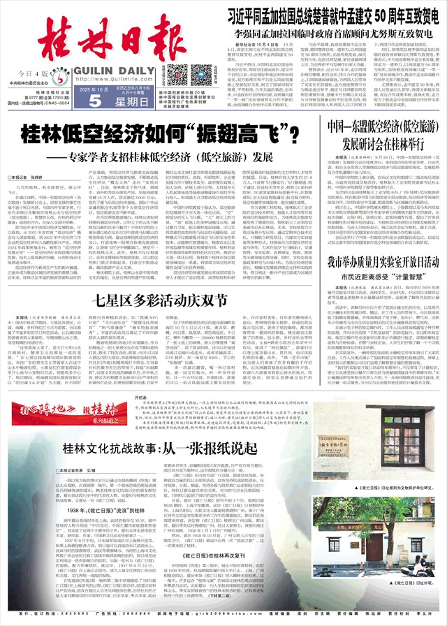 (上接第一版)夏衍是1927年入党的老党员,入党后的他一直在周恩来直接领导下工作。来桂林之前,周恩来给夏衍的指示是:“你去桂林和李克农商量,自筹经费,尽快恢复《救亡日报》。”