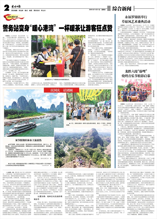 “茶水不够可以再加,需要帮助随时找我们。”民警小王一边为游客倒茶,一边叮嘱。几位老年游客感慨:“桂林景美,警察同志的服务更美!”