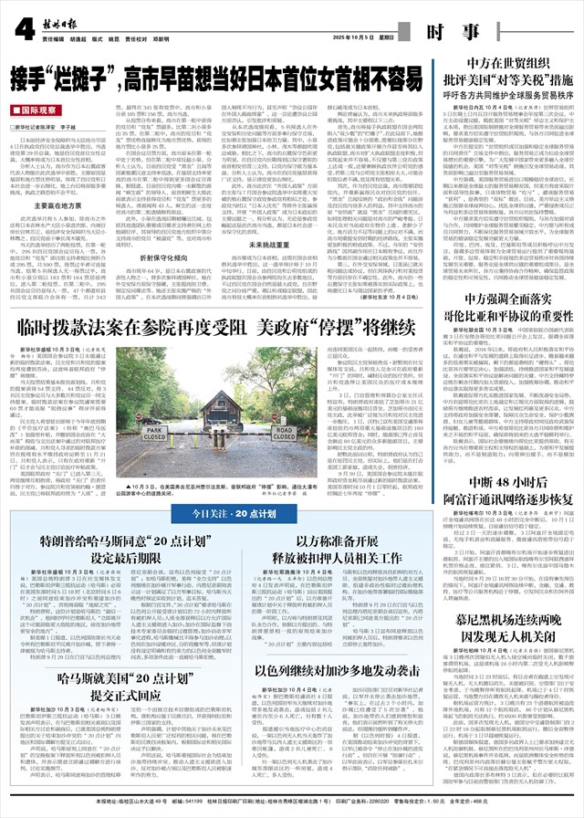 新华社华盛顿10月3日电(记者徐剑梅)美国总统特朗普3日在社交媒体发文说,巴勒斯坦伊斯兰抵抗运动(哈马斯)必须在美国东部时间5日18时(北京时间6日6时)之前同意结束加沙冲突和重建加沙的“20点计划”,否则将面临“地狱之灾”。