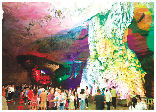 国庆中秋期间,桂林的气温跟假日的旅游一样火热,各大景区景点游客络绎不绝。这个“双节”假期里,游客走进七星景区的七星岩,一边欣赏洞内神奇的钟乳石景观,一边体验“自然空调”带来的惬意。 记者李凯 摄