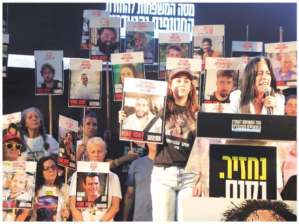 10月4日,被扣押人员家属和支持停战的人们在以色列特拉维夫举行游行集会,要求政府迅速在加沙地带实现停火,让被扣押人员回家。