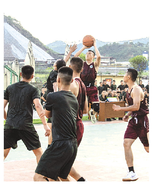 ▲武警官兵们在篮球比赛活动中进行激烈比拼。 刘晨 摄