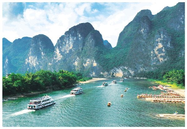 国庆中秋假期,游客乘坐游船游览漓江。 记者李忠波 摄