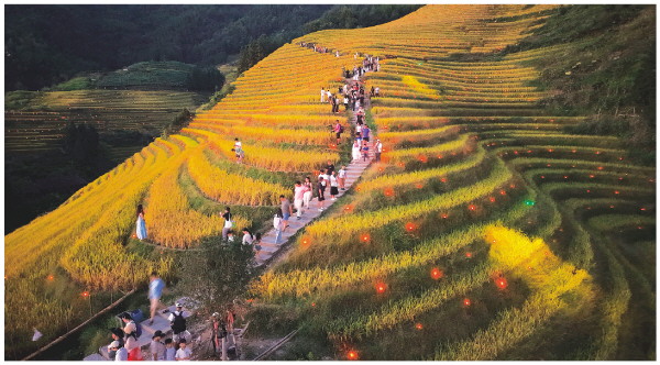 游客在龙脊梯田欣赏夜景。 潘志祥 摄