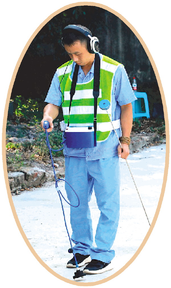 有时候为了更准确地定位,深夜里叶永初还要带着听漏仪和听音杆巡街。“因为深夜相对安静,在听漏时周围环境杂音少,能听得更清楚一些。”