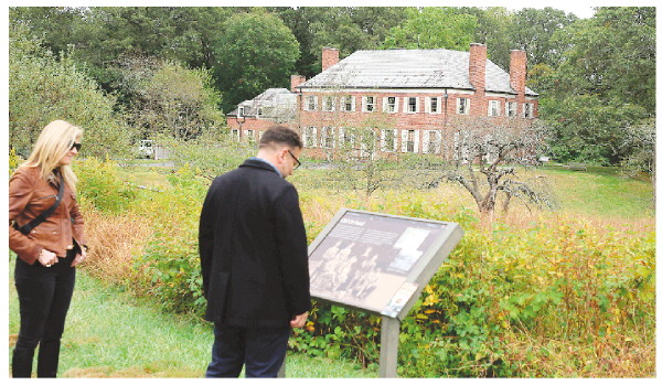 10月11日,人们在美国纽约萨格莫尔山国家历史遗址内阅读介绍。萨格莫尔山国家历史遗址部分服务暂停。