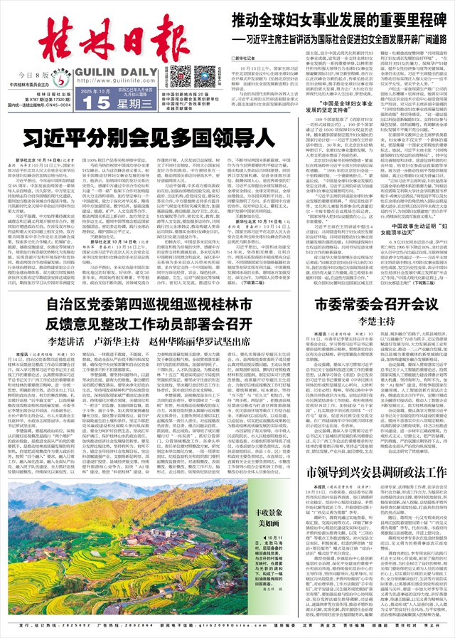 李楚强调,要坚持问题导向,以最坚决的态度、最有力的措施,拿出硬招实招抓好整改落实。要坚决净化好政治生态,坚持用改革精神和严的标准管党治党,深刻汲取周家斌严重违纪违法教训,持续强化对重点领域、关键岗位和“一把手”的监督,加强同级监督,敢于斗争、善于斗争,加大典型案例通报曝光力度,强化警示震慑效应,着力铲除腐败滋生的土壤和条件,坚定不移把党风廉政建设和反腐败斗争向纵深推进。要全力呵护好自然生态,坚决扛牢保护漓江、保护桂林山水的政治责任,加快推动经济社会发展绿色转型。要充分发挥比较优势,坚持有所为、有所不为,锚定全年经济社会发展目标,突出科创赋能强产业、文旅焕新促转型、项目建设扩投资、县域经济强支撑,持续提升旅游核心竞争力,加快“AI桂林”建设,推进“科创桂林”建设,奋力奏响高质量发展主旋律。要大力激发干事创业精气神,全面贯彻落实新时代党的组织路线,加强领导班子、干部队伍、人才队伍建设,为推动桂林“十五五”规划实现良好开局提供坚强组织保证。要坚决守住意识形态安全底线,坚决履行意识形态工作主体责任,筑牢意识形态安全屏障。