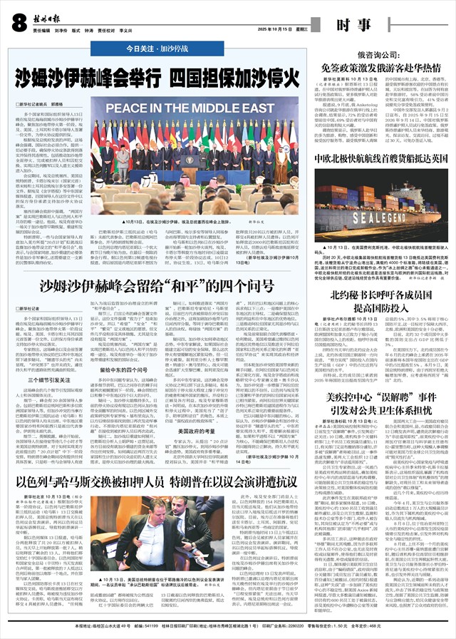 专家指出,这场峰会以及会前签署的加沙地带停火协议给巴以和中东地区留下诸多疑问。“隧道尽头的光”尚未显现,“冲突黑手”也并未消失,通往持久和平的道路依然充满曲折险阻。