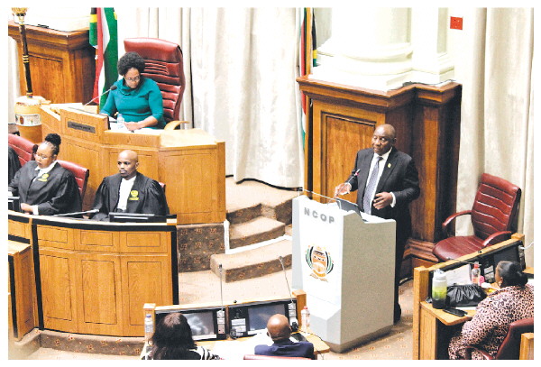 10月14日,在南非开普敦,南非总统拉马福萨(右二)在南非全国省级事务委员会(即议会上院)回答议员提问。