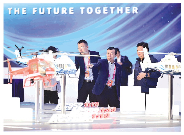 10月16日,观众在天津直博会直升机馆内参观。