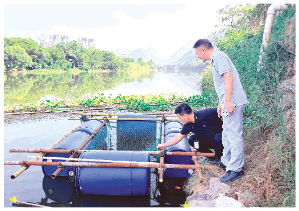 恭城瑶族自治县纪委监委聚焦茶江流域水质提升专项监督工作重点,充分运用“室组地”联合监督模式,通过深入一线实地检查,精准查找问题短板,推动职能部门履职尽责,以强有力监督守护茶江流域生态环境。图为该县纪委监委相关纪检监察室及派驻纪检监察组联合职能部门正在对茶江河沿岸开展实地监督检查。 蔡庆 摄