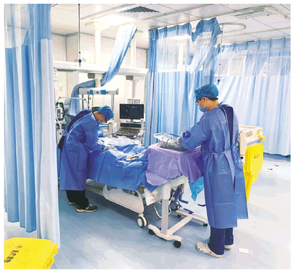 恰在此时,市人民医院急诊科副主任卢日冬带领携带ECMO设备的团队抵达。林惠旻、卢日冬立即为患者实施ECMO体外循环管路置入手术。