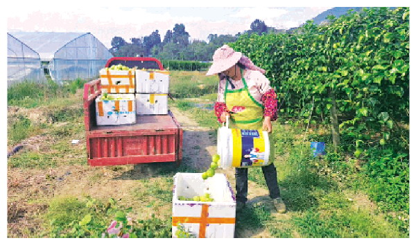 村民正在把采摘下来的百香果装车。 张乾孝 摄