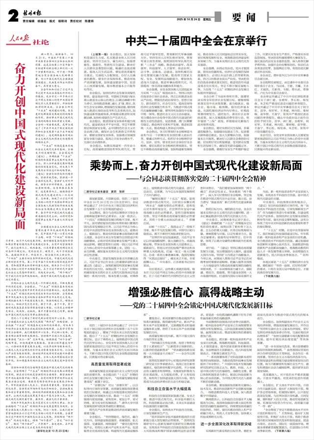 中国共产党第二十届中央委员会第四次全体会议,于2025年10月20日至23日在北京举行。