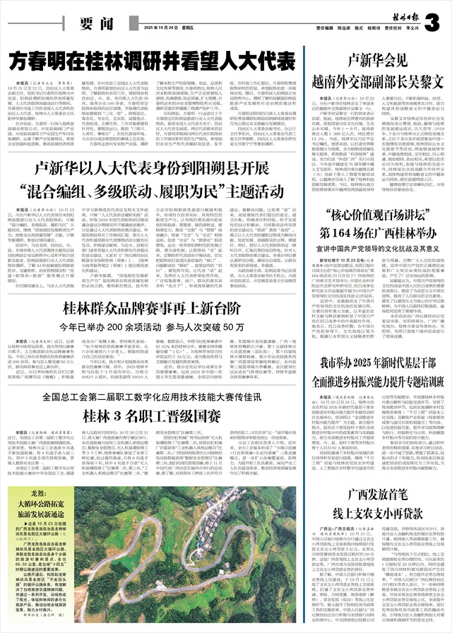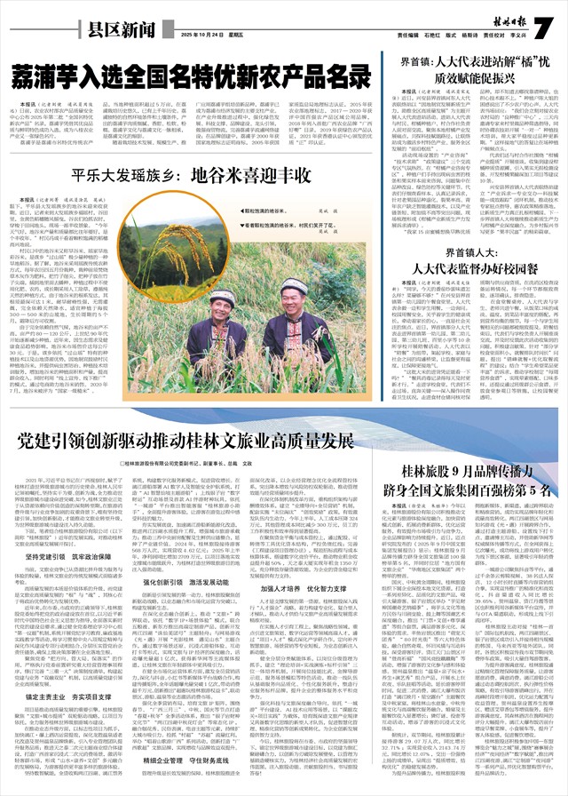 本报讯(徐莹波 朱继华)今年以来,桂林旅游股份有限公司积极推动文化元素与旅游体验深度融合,加快营销模式创新,拓展消费新群体,优化运营服务,有效提升市场吸引力与竞争力,企业品牌影响力持续提升。近日,迈点研究院发布的《2025年9月中国文旅集团发展报告》显示:桂林旅股9月品牌传播力跻身全国文旅集团100强榜单第5名,并同时位居“地方国有文旅企业”“华南地区文旅集团”两个榜单的榜首。