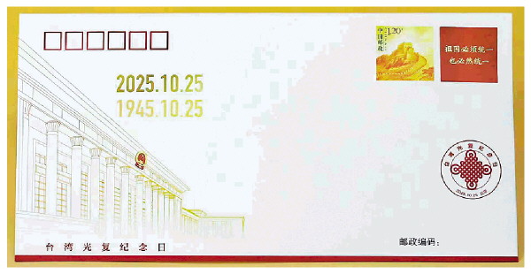 ◥10月25日是台湾光复纪念日,由中共中央台湾工作办公室监制,中国集邮有限公司发行《台湾光复纪念日》纪念封一套一枚。这是《台湾光复纪念日》纪念封照片。 新华社发