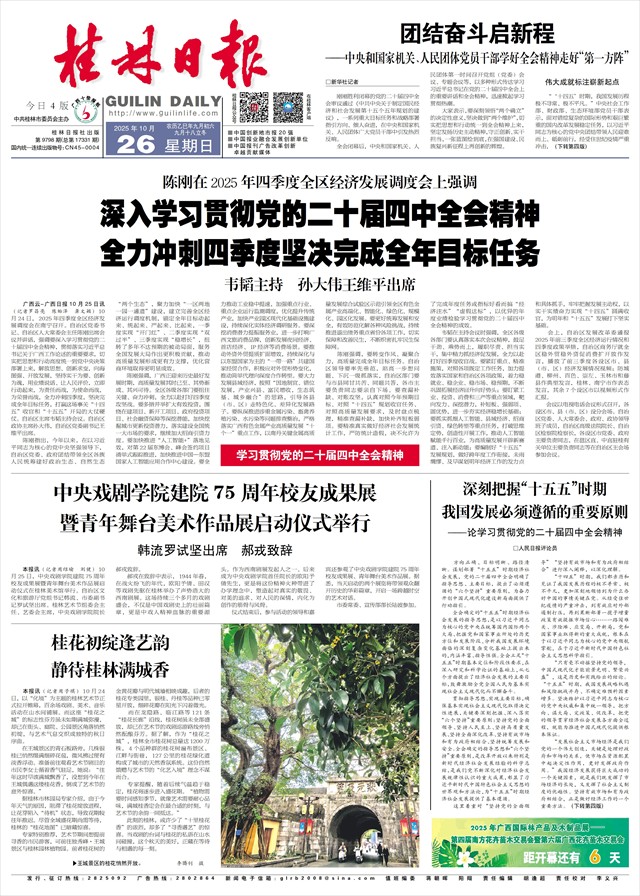 广西云-广西日报10月25日讯(记者罗昌亮 陈贻泽 龚文颖)10月24日,2025年四季度全区经济发展调度会在南宁召开。自治区党委书记、自治区人大常委会主任陈刚出席会议并讲话,强调要深入学习贯彻党的二十届四中全会精神,贯彻落实习近平总书记关于广西工作论述的重要要求,切实把思想和行动高度统一到党中央决策部署上来,解放思想、创新求变,向海图强、开放发展,坚持实干为要、创新为魂,用业绩说话、让人民评价,立即行动起来,为责任而战,为使命而战,为荣誉而战,全力冲刺四季度,坚决完成全年目标任务,打赢这场事关“十四五”收官和“十五五”开局的大仗硬仗。自治区主席韦韬主持会议。自治区政协主席孙大伟,自治区党委副书记王维平出席。