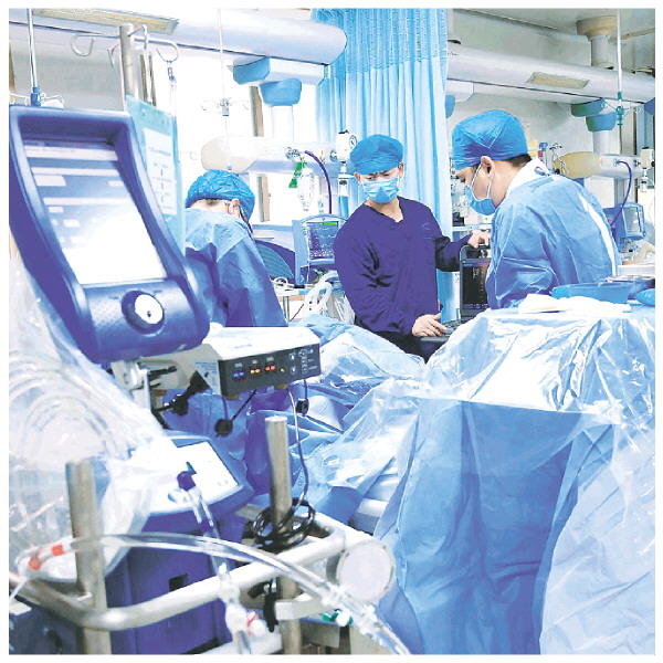 医务人员为小瑶进行ECMO装机以提供高级生命支持。(市人民医院供图)