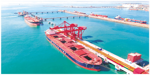 10月27日在山东青岛拍摄的山东港口青岛港第二座40万吨矿石码头。