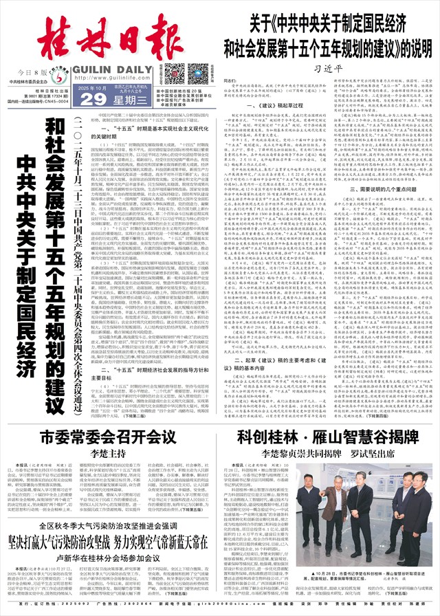会议强调,要深入学习贯彻习近平总书记在党的二十届四中全会上的重要讲话和全会精神,深刻领悟“两个确立”的决定性意义,坚决做到“两个维护”,切实把思想和行动统一到全会精神上来。要按照党中央部署和自治区党委工作要求,科学谋划好我市“十五五”高质量发展,全力以赴冲刺四季度,坚决完成全年经济社会发展目标任务,不断开创桂林高质量发展新局面,奋力谱写中国式现代化桂林篇章。
