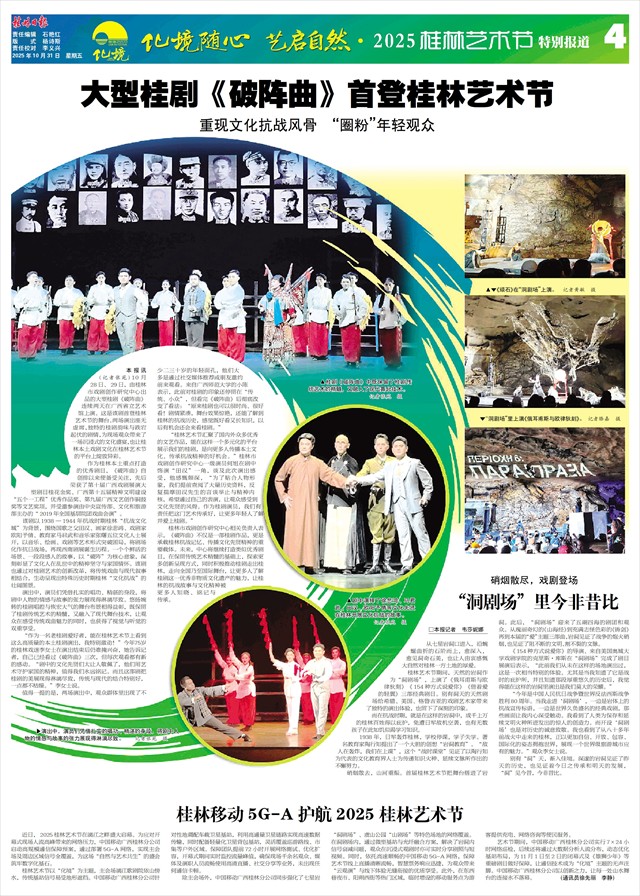 文化是城市的灵魂。山水甲天下的桂林,是一片丰厚的文化沃土,孕育了丰富、充沛的文化硕果,是享誉中外的历史文化名城。在历史的万水千山、层峦叠嶂中,有流传久远的故事和文人墨客留下的名篇巨著。其民族文化绚丽多彩,芦笛三村是傩文化艺术的发源地之一,至今还完整保存着寻双傩笛主奏、堂鼓与陶鼓协奏乐谱,乐具和傩面舞,每年三月三傩歌舞表演经久不衰。阳山就是在这样的文化环境中开启自己的艺术人生。他熟悉故乡的文化,对乡土社会和乡村生活情感真挚,喀斯特地貌激活他很多创作的灵感。在他笔下,对故乡自然与人文景观饱含情感的描绘、珍视与守护,在观众中引起了广泛共鸣。受故土文化的熏陶,他的作品将文雅趣味与乡土趣味、文人形式与民间形式巧妙结合,结构新颖简洁,色彩响亮和谐,情致刚健清新,这无不得益于桂林文化沃土的滋养和对文人山水画优良传统的继承。