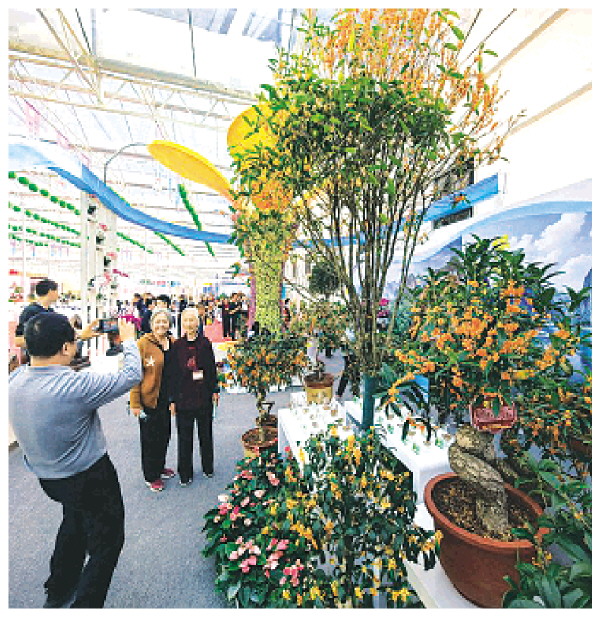 在1号展厅的桂林展区,室内展台的桂花与室外满城绽放的桂花香气交融、相互呼应。一位91岁高龄的老人,在家人的陪伴下步入展区,沉浸式感受这场专属的“桂花盛宴”。像这样被展会吸引的市民游客不在少数。他们或是独自前来,在烂漫花海中寻觅片刻宁静;或是约上好友同行,一边赏玩花卉一边畅谈生活;或是带着孩子参与,在缤纷展会里度过温馨的亲子时光……