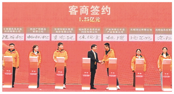 活动现场,外地客商看好“黄金柿饼”,分批签约。图为首批签约现场。苏桂 摄