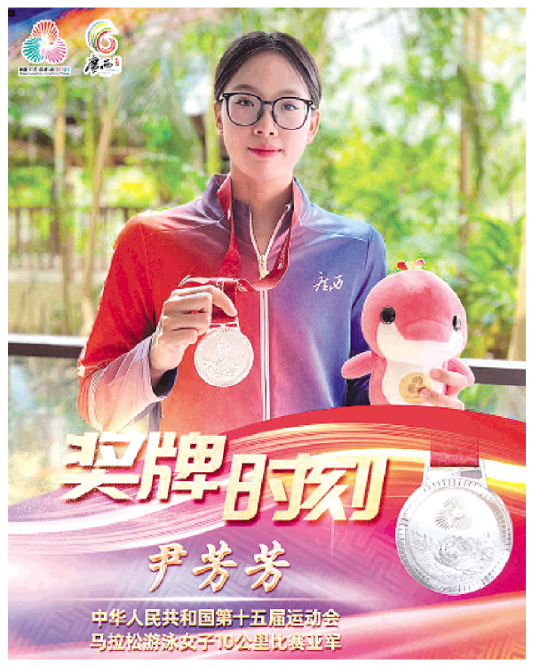2016年10月,尹芳芳被输送至广西水上运动发展中心接受专业系统训练,重点打磨800米、1500米自由泳等长距离项目,成为游泳与马拉松游泳兼项选手。在成长过程中,她也经历过漫长的瓶颈期,有很长一段时间成绩没有提升,一度感到迷茫。“幸好有家人的鼓励和教练的支持,让我坚持了下来。”尹芳芳说,正是这份坚守,让她一步步跻身国内高水平选手行列,最终站上全运会领奖台。