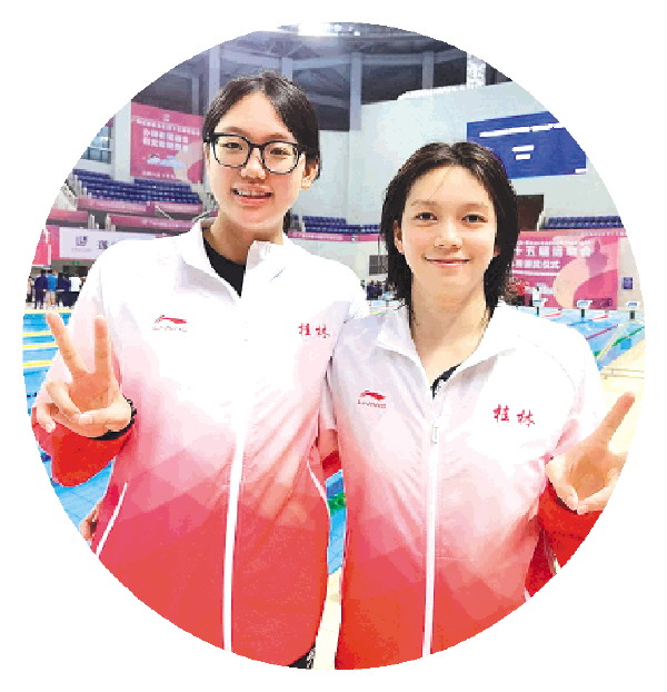 从桂林体校走向广西游泳队的尹芳芳(左)与队友易虹妤。目前易虹妤正在深圳参加全运会游泳项目比赛。 (王羽供图)