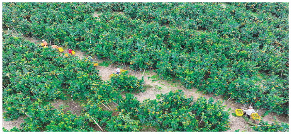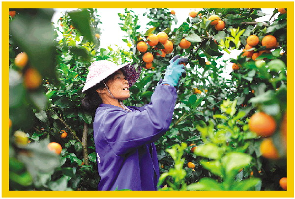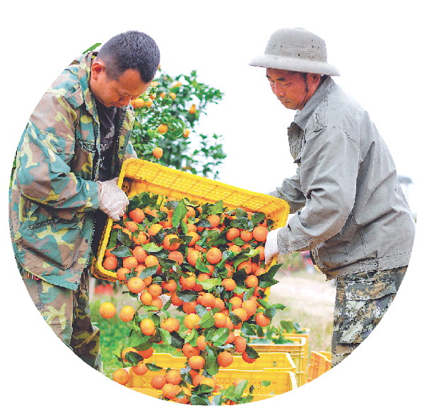 在潭下镇码头村的荣荣兴果蔬种植专业合作社基地,阳光映照下的金秋砂糖桔色泽鲜亮、圆润饱满。工人们分工协作,采摘、分拣、装筐、转运等工序有条不紊,一筐筐新鲜果实即将发往全国各地。“今年基地720亩金秋砂糖桔已被客商包园预订,统价10元每公斤,预计产量超100万公斤,销售额将突破1000万元!”合作社负责人阳细荣满脸喜悦地说道,“现在我们每天按订单采摘,完全不用担心销路问题。”