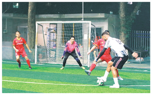 20时30分,另一场焦点战在阳朔漓水云庭民宿·广泰电力·诚通制冷·国会一队与45+组冠军智喜·日立中央空调·蓝剑之间展开。国会一队祭出巴西双人组,开场即占据主动。而蓝剑所在组别为45+组,尽管获得该组冠军,但面对公开组的精兵强将,在体能上处于劣势。上半场开始仅1分钟,外援91号蒂亚戈接直塞球突入禁区,连续晃过两名防守球员后低射破门,1∶0打开局面。紧接着,蒂亚戈第二分钟再进一球,2∶0帮助队伍奠定取胜基调。下半场国会一队继续施压,最终以6∶0横扫对手取胜。