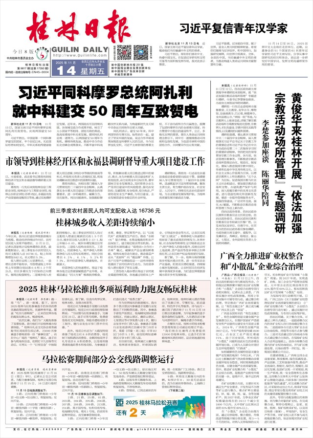 马拉松赛期间部分公交线路调整运行   本报讯(记者苏展 通讯员黄雅琪)2025桂林马拉松赛将于11月16日(周日)举行。记者从公交公司获悉,为配合赛事保障,桂林公交部分线路将于11月15日、16日进行临时调整。