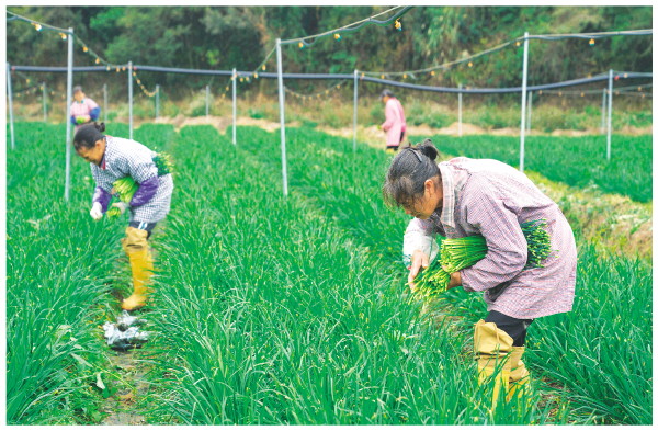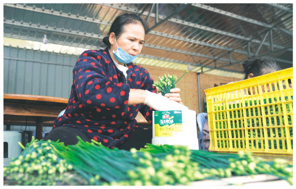 “我在这里干了7个月,既能挣钱,又能照顾老人和孩子,比外出打工强多了。”正在分拣韭菜花的蒋格英笑着说,语气中充满满足。