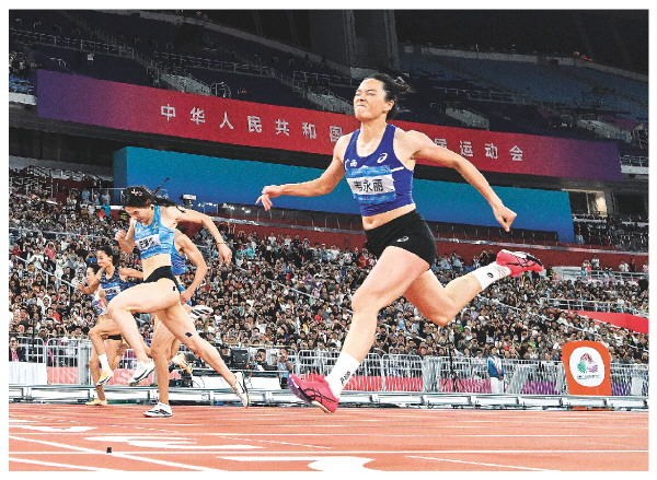 当日,第十五届全国运动会田径女子100米决赛在广州举行。新华社记者江汉 摄