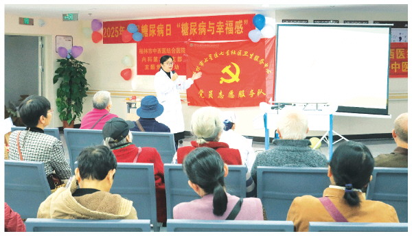 本报讯(徐莹波 周燕)近日,桂林市中西医结合医院内分泌肾病科、眼科、中医特色治疗区联合七星社区卫生服务中心举行了“糖尿病与幸福感”主题活动。本次活动旨在提升全社会对糖尿病的认识,倡导健康生活方式,推动糖尿病的有效防控,推进慢性病防治行动,助力健康桂林建设。