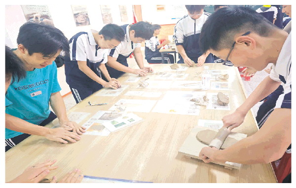 “校服少年”们正在开展陶瓷制作(学校供图)