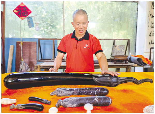 与父亲、兄长不同的是,阳新成更加注重把生活的细节融入艺术中。在阳新成的各种获奖作品中,有椭圆形的冬瓜、细长的茄子等,“这些作品的创作大都来源于生活。”阳新成说,石雕创作不仅需要技艺,更需要耐心和对材料的理解。