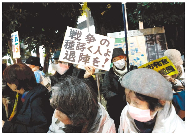 寒风中,抗议声在日本首相官邸前再次响起