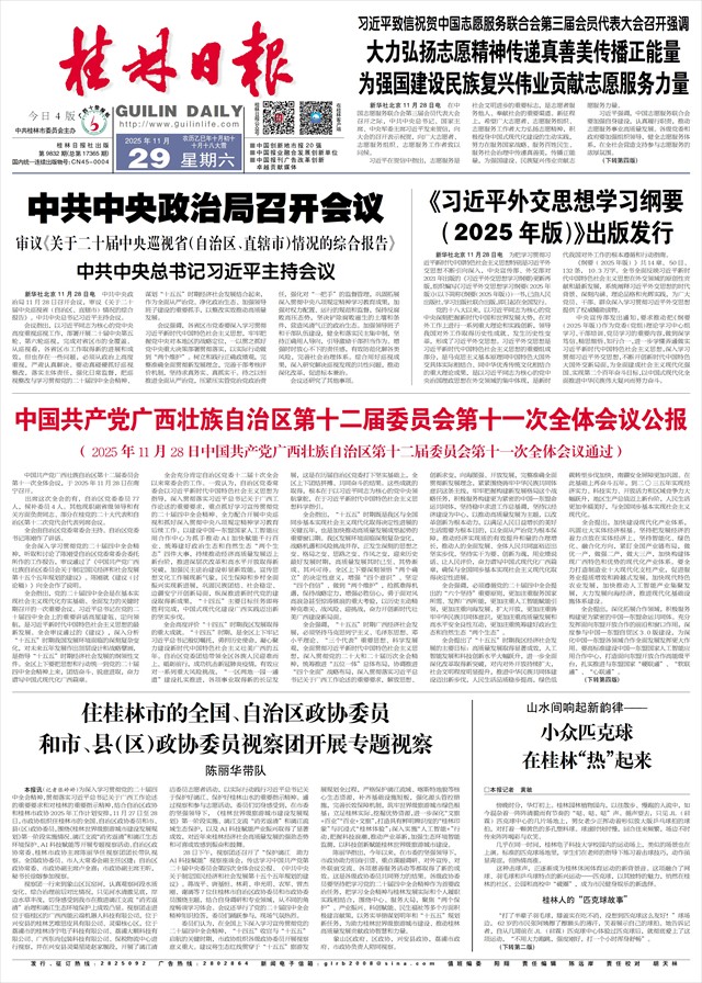 中国共产党广西壮族自治区第十二届委员会第十一次全体会议公报 (2025年11月28日中国共产党广西壮族自治区第十二届委员会第十一次全体会议通过)   中国共产党广西壮族自治区第十二届委员会第十一次全体会议,于2025年11月28日在南宁召开。