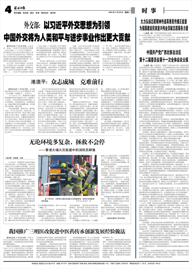 11月26日下午,香港新界大埔屋邨宏福苑多栋住宅楼发生火灾,造成重大人员伤亡。面对这场突如其来的灾难,从中央到特区,从政府到民间,从香港到内地,迅速汇聚抗灾救灾磅礴力量,充分展现人间有情、团结大爱。