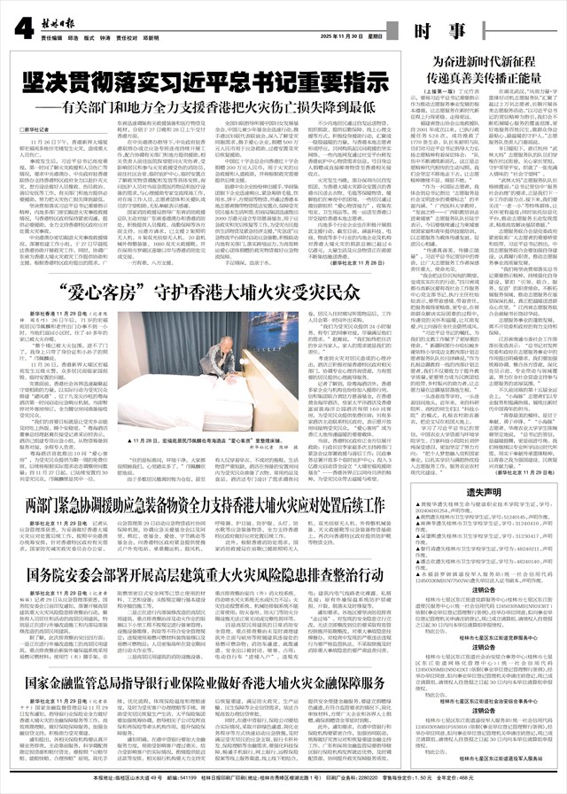 新华社北京11月29日电(记者张千千)国家金融监督管理总局11月29日发布通知,指导银行业保险业全力做好香港大埔火灾的金融保障服务等工作,高效查勘理赔,做好保险保障服务,加强金融信贷支持,积极助力受灾重建。